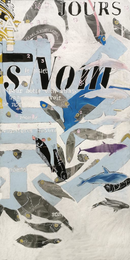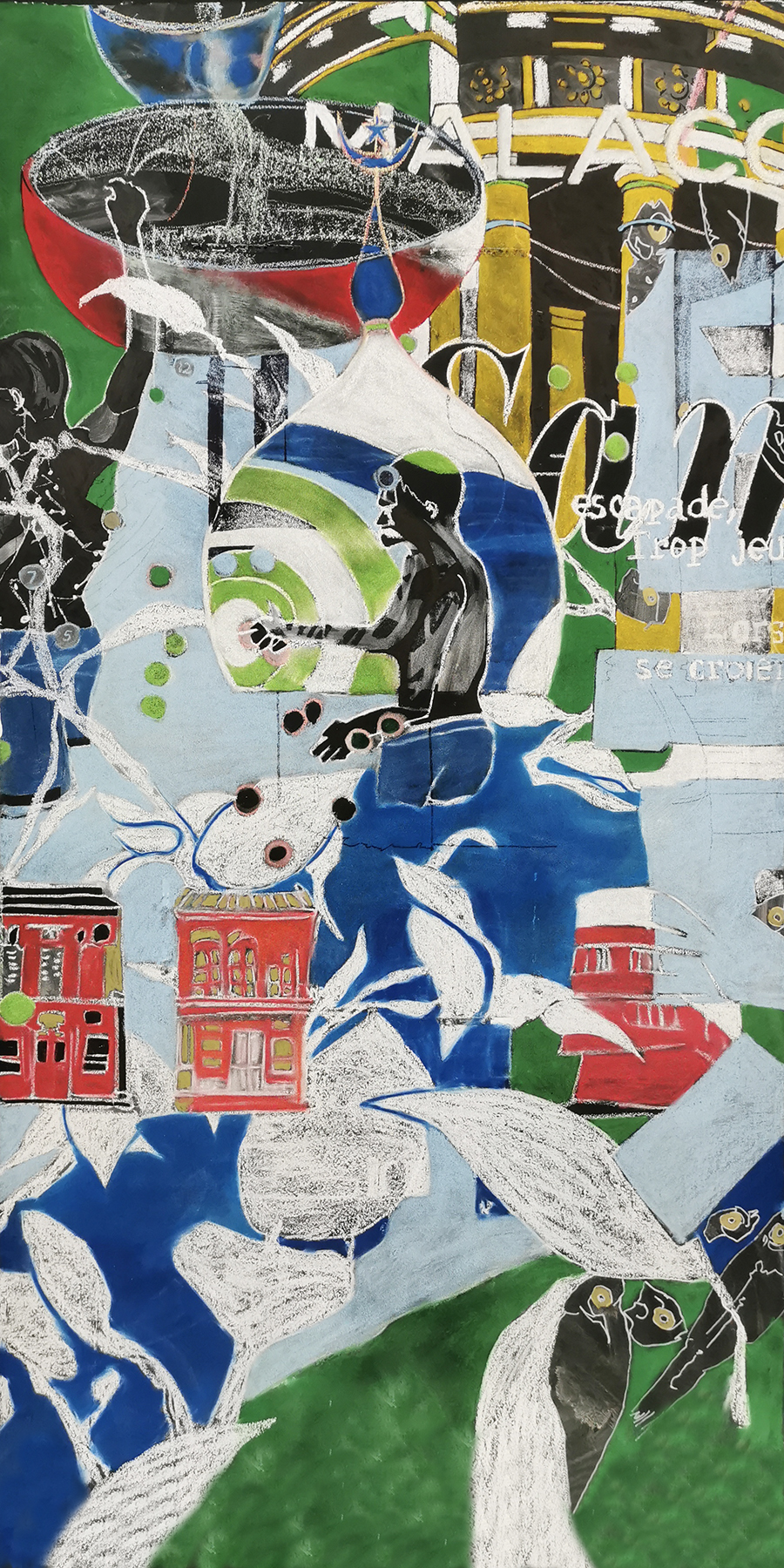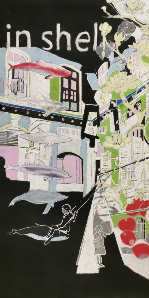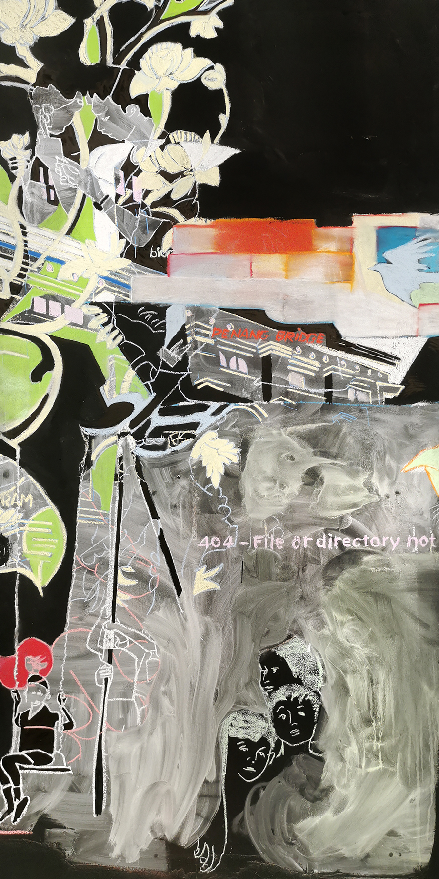 In this artwork of seven large-format panels, Nicolas Havette traverses a broad sweep of platforms and devices to make images that slalom between photography, performance and drawing, creating bridges between documentary and poetry. Fortunes: Until the Sun and the Moon Give Light is a wall drawing made with chalk on blackboard, using video projectors. It is a unique homage to Penang.