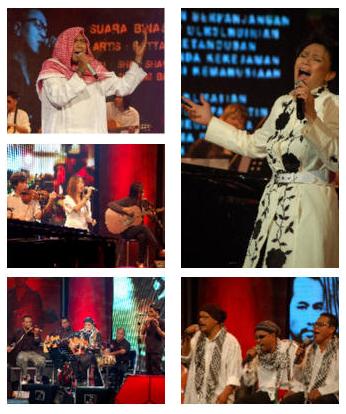 Khadijah was one of the artists at a special concert to create awareness of the plight of the Palestinian people, especially in light of the recent catastrophe in Gaza. The concert was the brainchild of Dr Wan Zawawi whose idea was to combine a few established artists well-known for their social commitment with rising stars of the thriving indie scene. Besides Khadijah the concert featured songs by Hattan, Kopratasa and M Nasir, as well as a host of indie performers such as Tony Leo, Rendra and Hameer Zawawi, Izzy Mohamed, Nick Davis, Najwa, Milli'z, Azyml Yunor and Dr Wan Zawawi. The concert played to a full house in RTM's Auditorium Perdana and was broadcast live on RTM2.Photo montage:
